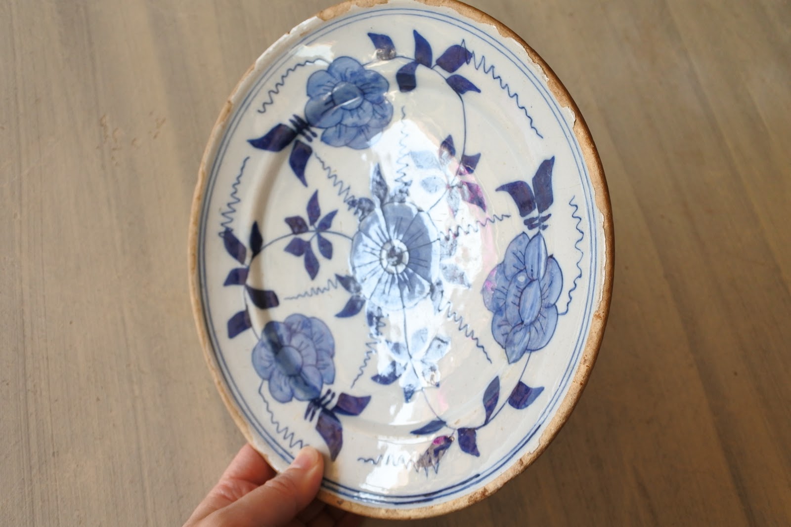日本や中国の陶器の影響が濃い18世紀のブルーカマイユ柄のデルフトです。